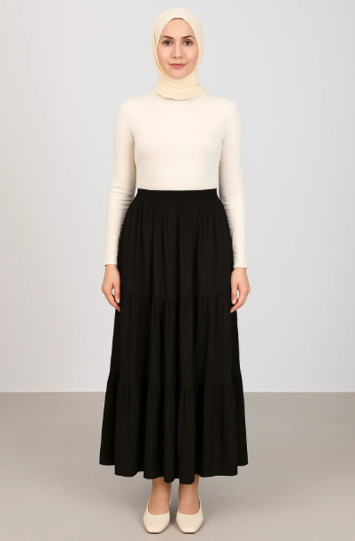 Viskon Üç Katlı Etek